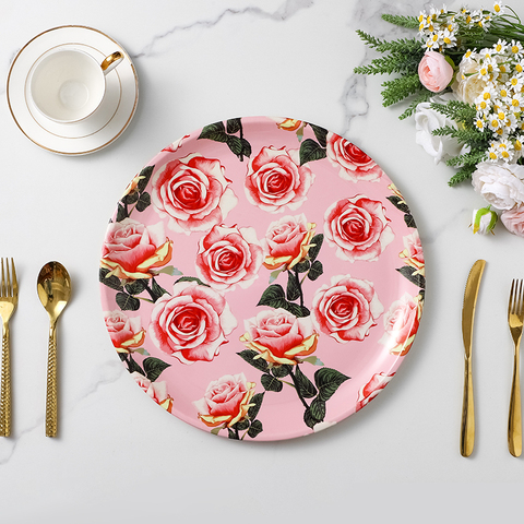 Blumen druck Geschirr Runde/Quadrat Platte Großhandel Custom Printing Kunststoff platten