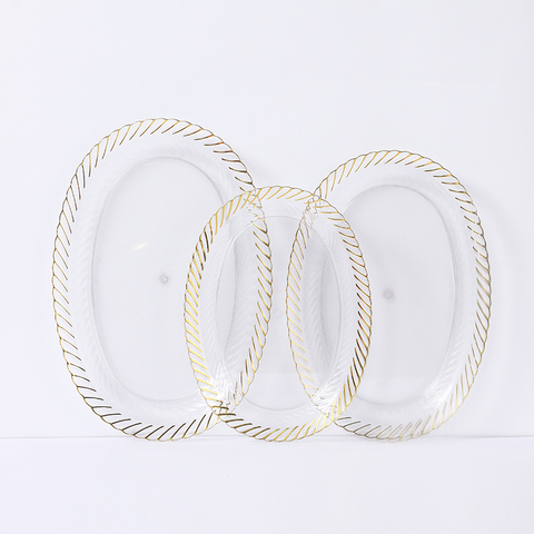 타원형 디자인 투명 골드 림 웨딩 장식 플라스틱 트레이 플라스틱 플레이트 스낵 서빙 트레이